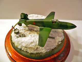Then I applied frozen snow, made from the mixture of white glue, water, satin lacquer and Woodland Scenic Snow product. Finally I used washes to break the plain look of snow.